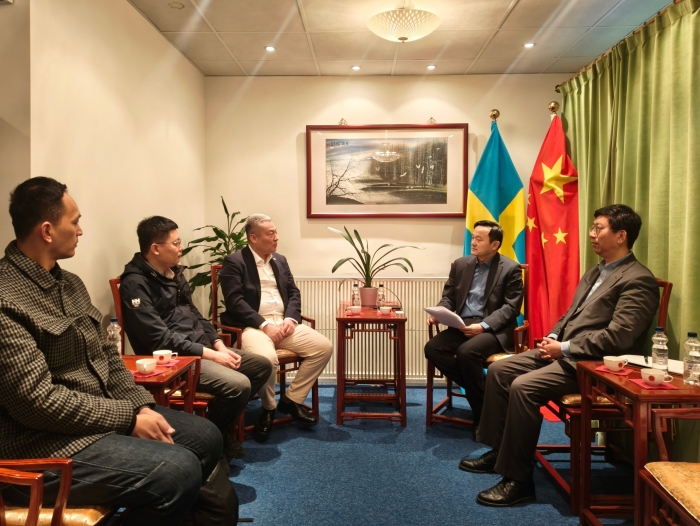 12月6日,驻哥德堡总领事杨培栋、商务领事韩景旸会见招商局金陵船舶(威海)有限公司副总经理刘鑫男,副领事贾童童陪同。